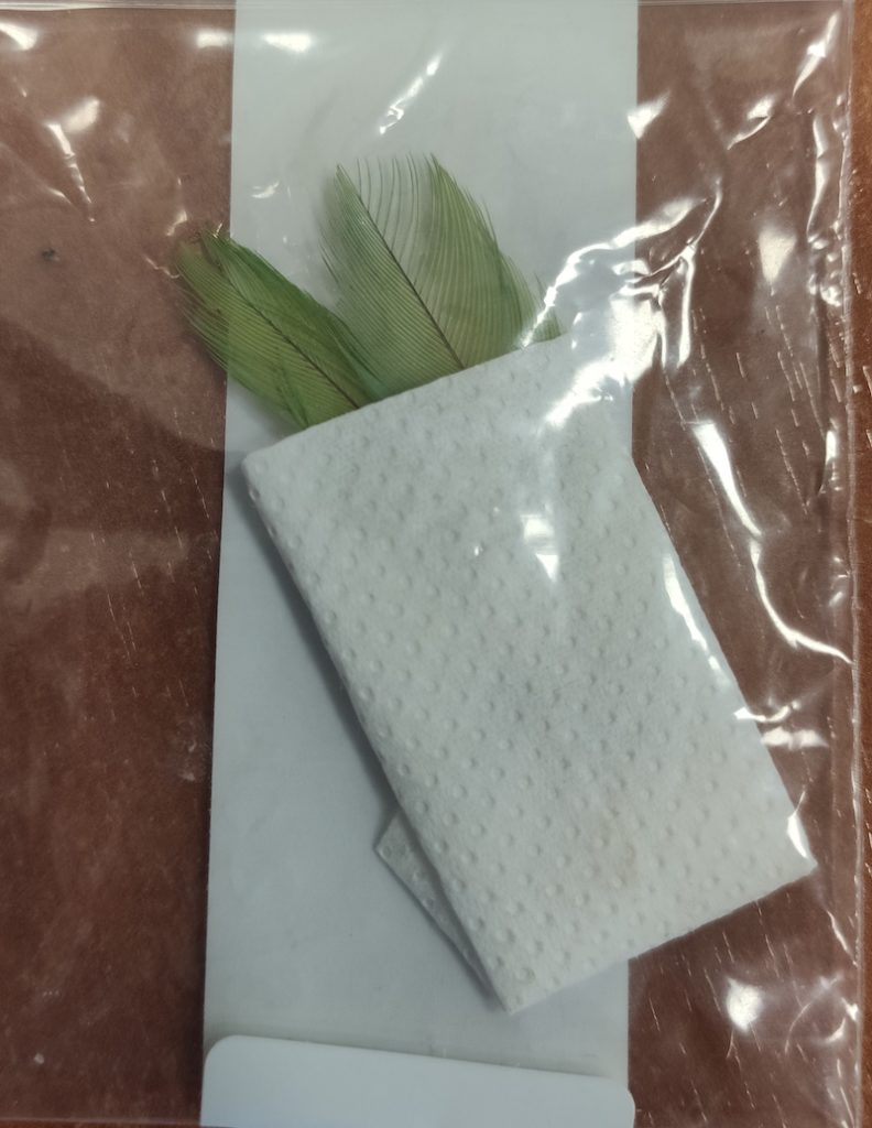 L’analisi può essere effettuata dal momento in cui spuntano le prime penne in crescita. Questa tipologia di penne è ricca di materiale genetico. Attenzione! Il piumino non è idoneo. Questa tipologia di penne è però soggetta ad una degradazione più veloce a causa del sangue spesso presente. La degradazione del campione agevola la degradazione del DNA rendendo difficile o impossibile l’analisi. LE PENNE IN CRESCITA DEVONO ESSERE SEMPRE AVVOLTE IN UN PEZZETTO DI CARTA ASSORBENTE per agevolarne (ma non garantirne) la conservazione.